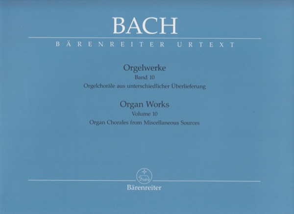 Composizioni per Organo, vol. X: Organ Chorales from Miscellaneous Sources complements the edition of the complete organ works. Contains works not previously included in the New Bach Edition. Foreword (Ger/Eng) and Facsimile pages